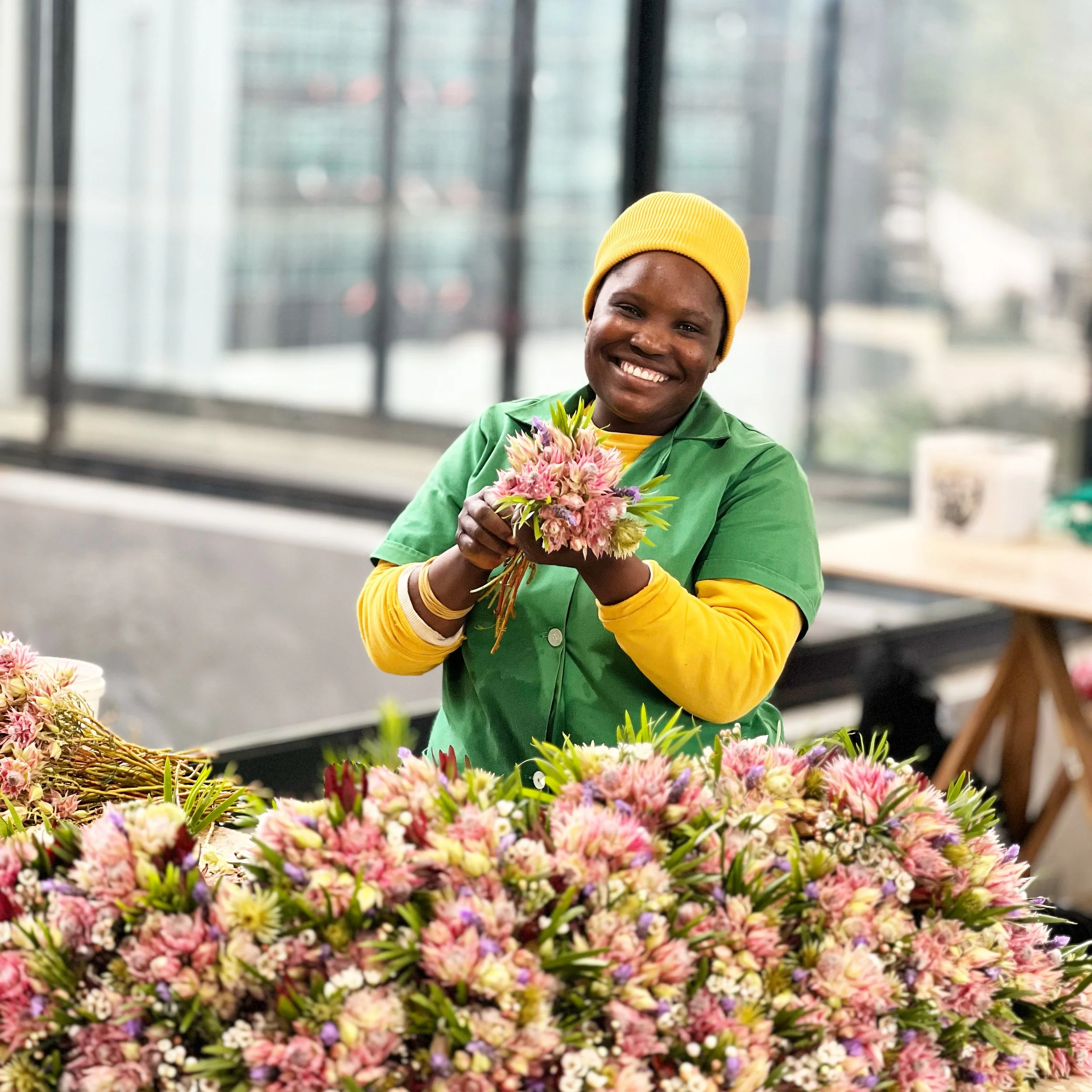 All our bouquets are thoughtfully designed with a focus on seasonality ,freshness and unique combinations. While our flowers naturally have a long shelf life, we prioritise minimising the time between harvest and delivery to ensure maximum quality. Our team of bouquet designers brings over 60 years of experience across three generations, specialising in indigenous South African flowers.
